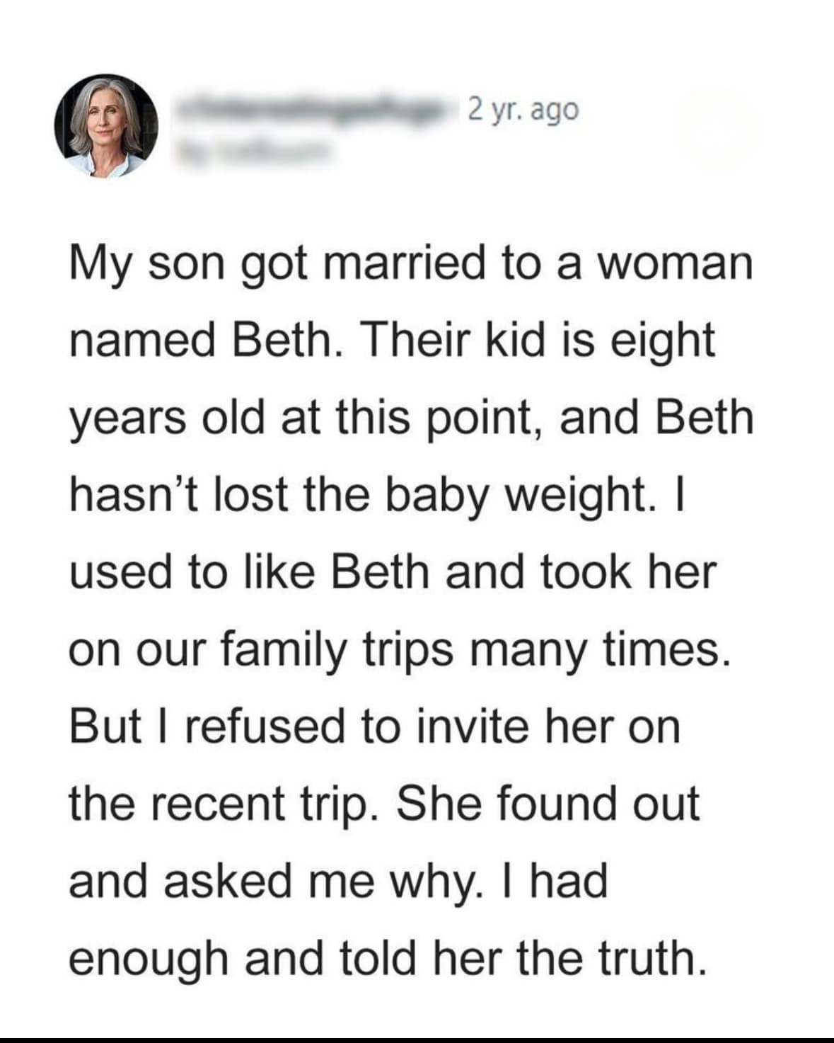 The woman didn’t invite her daughter-in-law for a family trip, and people agreed with her